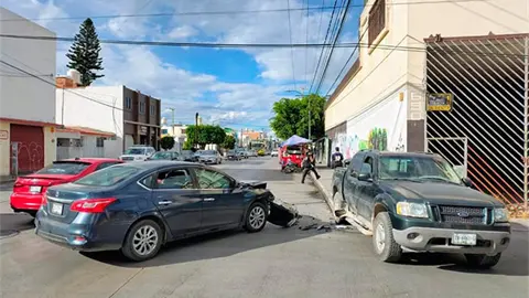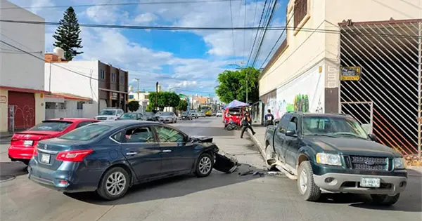 Al llegar a la avenida Pedro Moreno, el conductor no cedió el paso ante vía principal y así chocó de frente contra el costado derecho de una camioneta Ford Explorer que en esos momentos se desplazaba por ahí, la cual al final quedó sobre la banqueta y en sentido contrario a la circulación.