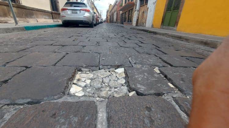 Asimismo, en la intersección de la Calle 5 de Mayo y Agustín de Iturbide, el tráfico vehicular de la zona ha generado un constante desgaste en el adoquín de este espacio.