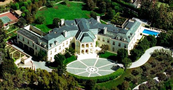 El chateau de 5,258 metros cuadrados es la casa más grande en Los Ángeles. Está ubicado en el barrio de Holmby Hills, en un terreno de 1.9 hectáreas..