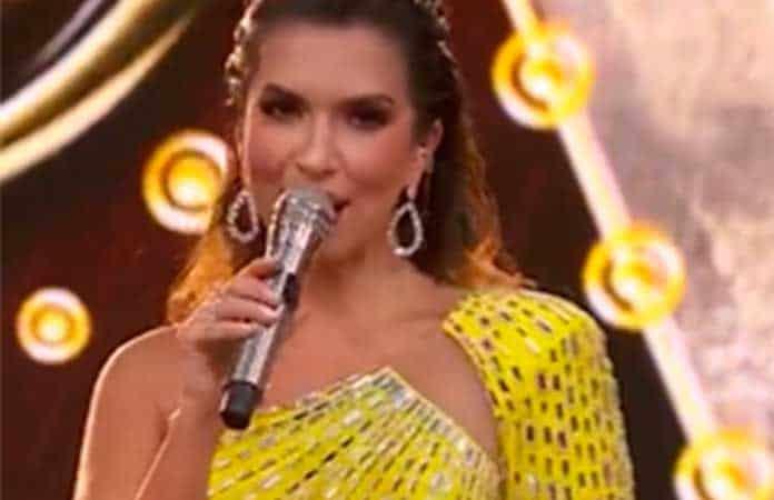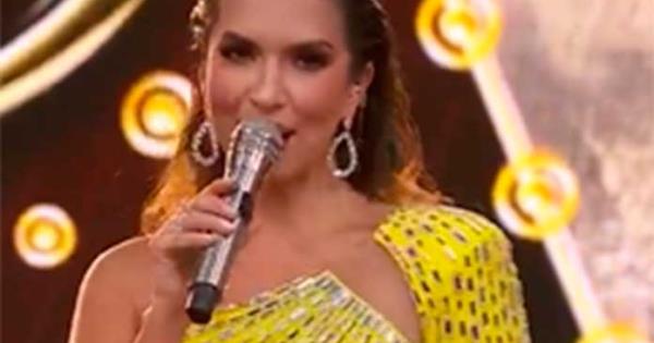 Durante el arranque de la emisión la presentadora apareció con un amplio vestido brillante color verde, después portó un vestido negro más corto con detalles plateados y en el último bloque tenía un vestido amarillo con un hombro descubierto.