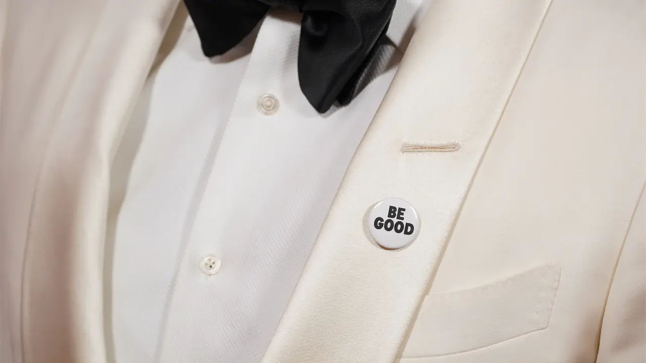 Los pines en blanco y negro mostraban lemas como "BE GOOD" (sean buenos) e "ICE OUT" (fuera ICE), introduciendo un ángulo político en la premiación después de la ceremonia relativamente apolítica del año pasado.