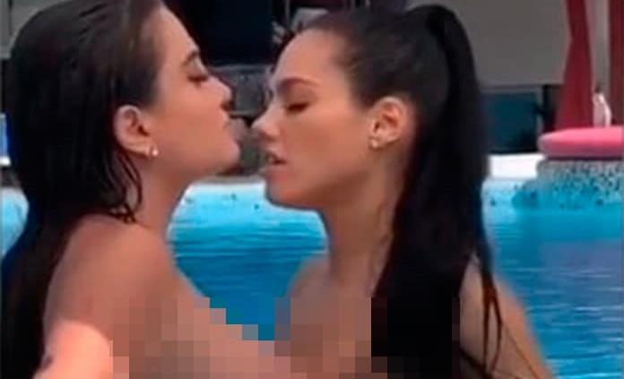 Las dos chicas eróticas subieron la temperatura de la alberca de un hotel en Cancún, donde grabaron un candente clip para un canal XXX.