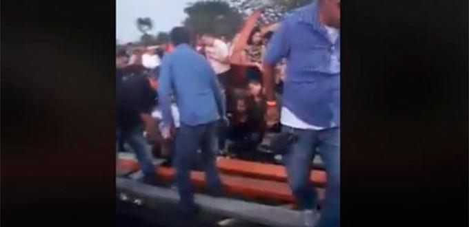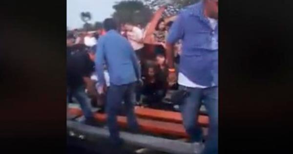 El hecho, registrado alrededor ayer a las 19:00 horas, ocurrió cuando unas gradas no resistieron el peso de los asistentes y se vencieron, dejando a varias personas en el suelo.
