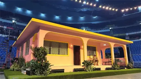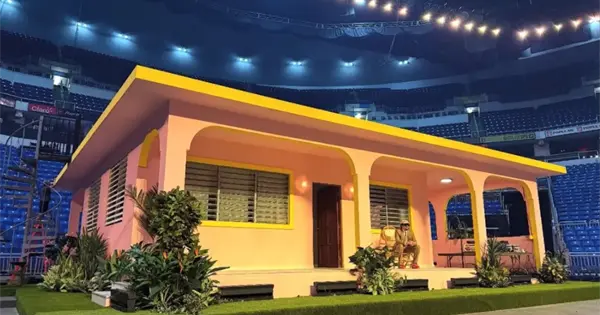La construcción, inspirada en una casa puertorriqueña, ya formó parte de sus presentaciones en el Coliseo de Puerto Rico y, según Ocesa, busca "crear momentos más íntimos, emocionales y cercanos con el público".