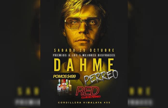 San Luis Potosí. -El establecimiento “Red Nite-Club”, en la capital de San Luis Potosí, ha recibido fuertes críticas por promocionar su fiesta de disfraces con la imagen de Jeffrey Dahmer, protagonizado por Evan Peters en la popular plataforma de streaming.