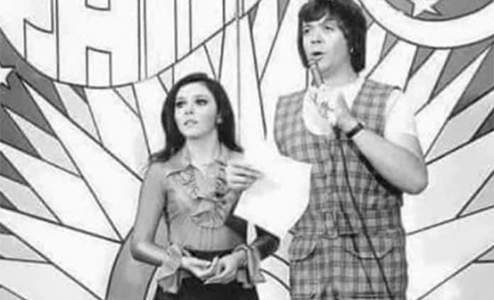 En la instantánea se observa a una muy joven Verónica Castro junto a "Chabelo", quien tiene cabello largo y sostiene un micrófono.