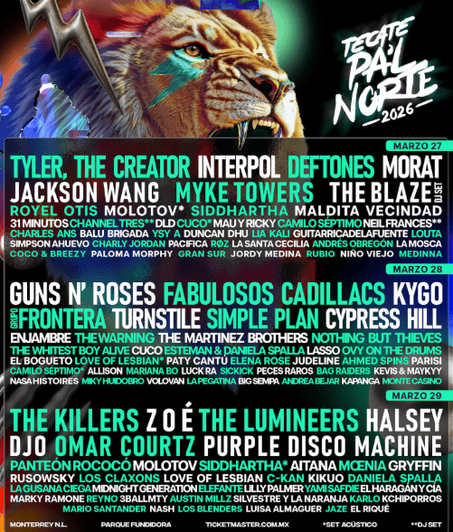 Tecate Pa'l Norte 2026: Cartel con Tyler, The Creator, Guns N' Roses y más