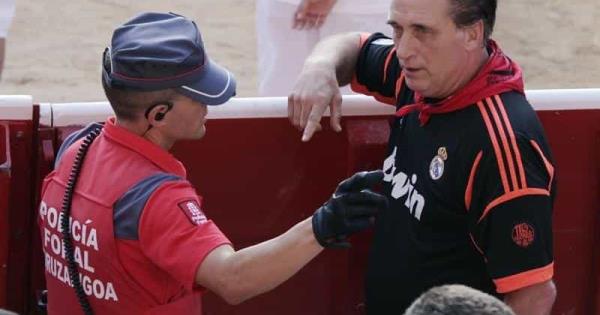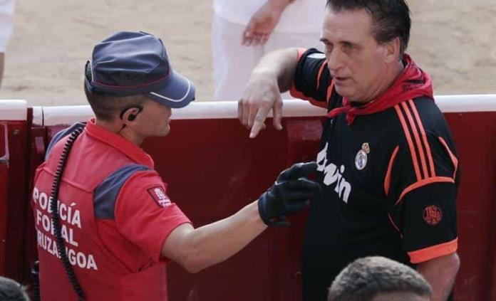 El actor participó este viernes el encierro portando un saquito en el que guarda cenizas de "PJ", para cumplir así simbólicamente con el compromiso de correr juntos ante los toros.