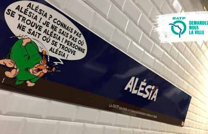 Doce estaciones han cambiado de nombre por unos días para festejar el cumpleaños: "Place de Clichy" se ha convertido en "Place de Clichix", "École Militaire" en "École Légionnaire" (escuela legionaria) y la estación de "Bourse" ("Bolsa") en "Sesterce" ("Sestercio", antigua moneda romana).