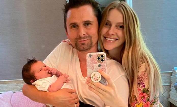 A través de su cuenta de Instagram, el vocalista de Muse subió unas fotos y felicitó a la modelo por la llegada de la bebé.