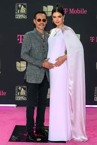 No todos se atrevieron a jugar con esquemas conocidos. Marc Anthony y su esposa Nadia Ferrera desfilaron mostrando por primera vez la incipiente barriga de embarazo de la modelo paraguaya, que vistió un traje de noche color rosa claro.