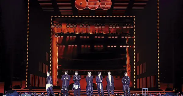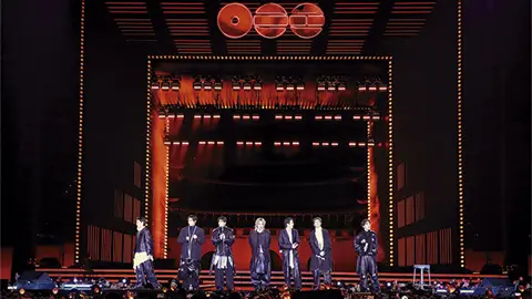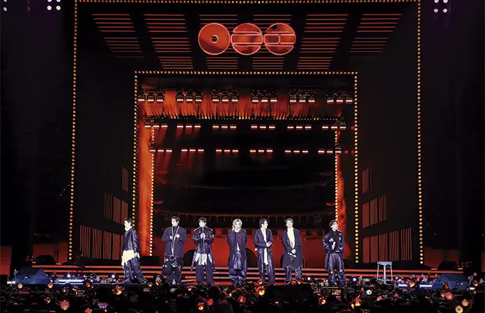 La banda anunció su entrada al escenario con el sonido de la campana divina del rey Seongdok, un tesoro nacional, que forma parte del interludio de su nuevo álbum.
