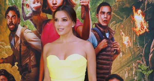 Longoria, que interpreta en la película a la madre de Dora, deslumbró hoy en el cine Regal L.A. Live de Los Ángeles con un vestido amarillo con escote de palabra de honor.