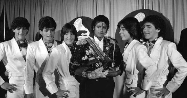 En esta foto del 28 de febrero de 1984, Michael Jackson, en el centro, posa entre bambalinas con el grupo Menudo durante la ceremonia de los premios Grammy en Los Ángeles. De izquierda a derecha Charlie Massó, Robby Rosa, Roy Roselló, Jackson, Ray Reyes y Ricky Meléndez. (Foto: AP)