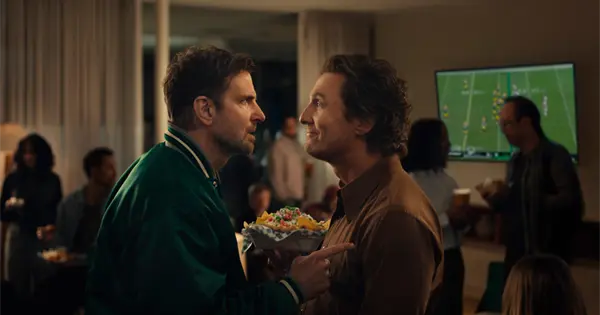 Y Uber Eats recluta a Matthew McConaughey por segundo año consecutivo para convencer a las celebridades, este año son Bradley Cooper y Parker Posey, de que el fútbol es una conspiración para hacer que la gente tenga hambre y pida comida.