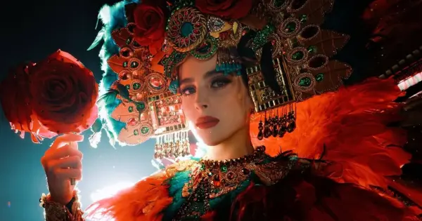 El diseñador del atuendo, Fernando Ortiz, explicó que la pieza combina elementos mexicas llenos de simbolismo. El hollín, dijo, representa renacimiento y movimiento; mientras que los colibríes evocan a los guerreros mexicas caídos en batalla, quienes regresan como mensajeros en estas aves.
