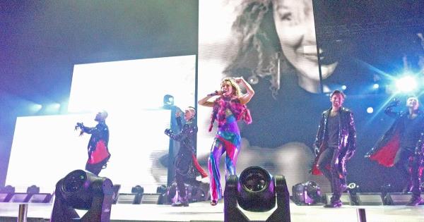 “Vamos, esas manos arriba”, pidió, y de inmediato sonaron los acordes de la canción “La noche se mueve” y una nueva versión de “Muévelo”, en el que todo momento estuvo acompañada por bailarines.