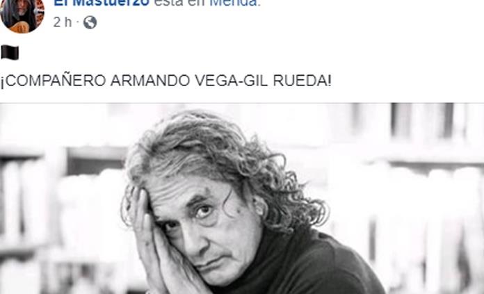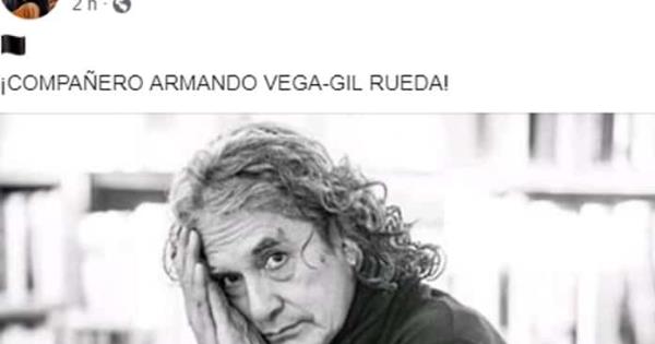 Previamente en su cuenta de Facebook difundió una fotografía en blanco y negro de su colega con la frase: “¡Compañero Armando Vega-Gil Rueda!”; la publicación ha sido compartida por cientos de admiradores y una hora después ya tenía más de 400 comentarios.