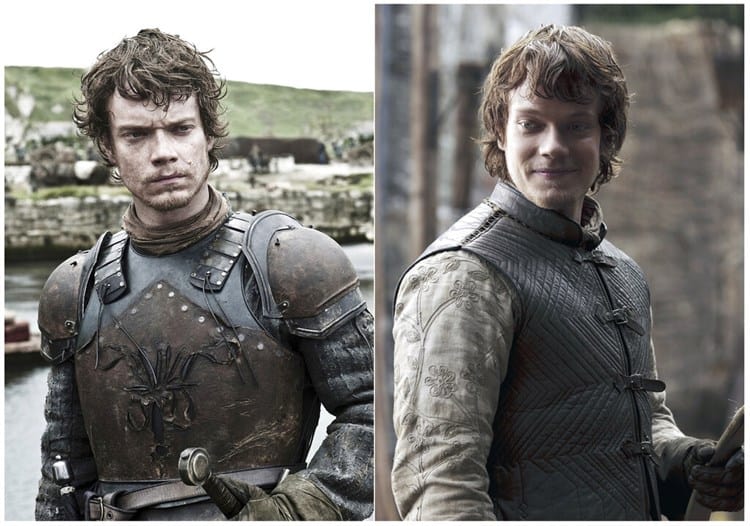 Otro granuja y frecuentador de prostíbulos cuando comenzó la serie, Theon ha sido brutalmente humillado y escarmentado desde entonces. Tras un sangriento y fallido intento por conquistar Winterfell, donde creció entre los Stark, es mantenido como prisionero por Ramsay Bolton, quien lo castra, le arranca las uñas, le quita los dientes y lo apoda “Reek”, convirtiéndolo en una triste sombra de un humano. Poco a poco se fue recuperando en temporadas recientes, incluida su voluntad para luchar.