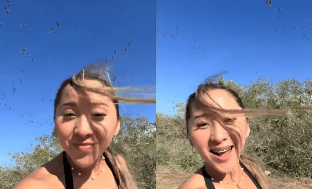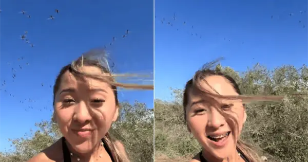 A través de su cuenta de TikTok, Elisa compartió el video en el que se le observa realmente sorprendida por la cantidad de flamencos que están volando de la zona. "Chicos estamos aquí en la manada de flamencos, vean eso, cuántos hay, un montón de flamencos", dice la joven.