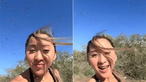 En las imágenes, la misma joven indicó que perturbó a la parvada de flamencos con el elevado volumen de su música, causando que decenas de ejemplares salieran volando de la zona, acción que únicamente causó asombro en la influencer, quien comentaba: "Se están yendo todos los flamencos y salen más y más".