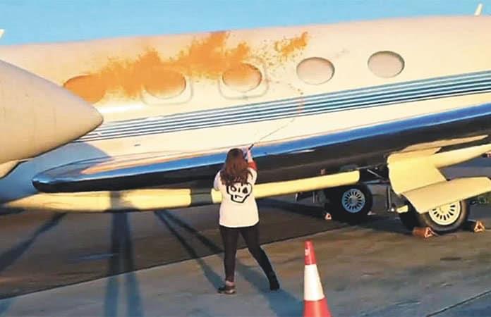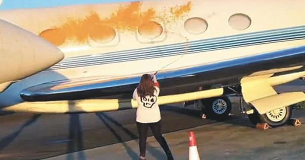 CIUDAD DE MÉXICO. - El jet privado de la cantante Taylor Swift se convirtió en el objetivo de dos activistas climáticas del movimiento Just Stop Oil el día de ayer por la mañana en el aeropuerto de Stansted, ubicado a 50 km al norte de Londres. Las jóvenes intentaron vandalizar el avión de la estadounidense, pero al no encontrarlo, optaron por rociar con extintores llenos de pintura naranja otras dos aeronaves.