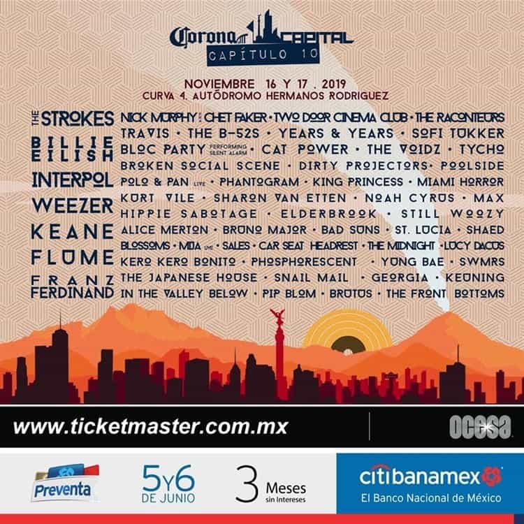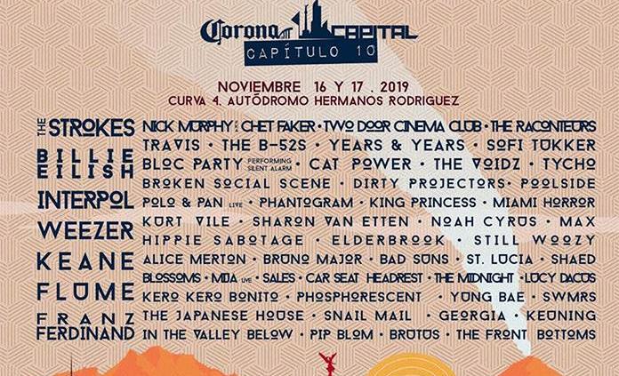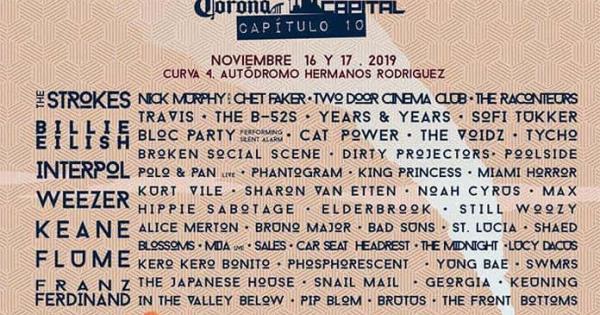 Interpol, The Strokes, Billie Eilish, Weezer, Keane, Flume y Franz Ferdinand son algunas de las grandes figuras que encabezan el cartel del festival que se realizará los días 16 y 17 de noviembre de 2019 en la curva 4 del Autódromo Hermanos Rodríguez.