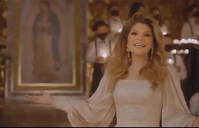 A través de sus redes sociales, la actriz compartió el video de dicho tema, en el que vestida de blanco y rodeada de niños con cubrebocas, Cantoral le rinde homenaje a la "morenita del Tepeyac".