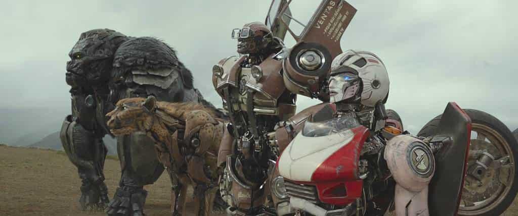 Demasiado tarde llegan las estrellas titulares del espectáculo: las bestias. Está Optimus Primal, un gorila de lomo plateado metálico de 13 pies (5 metros) de altura con la voz de Ron Perlman; Cheetor, un guepardo del tamaño de un camión pequeño con la voz de Tongayi Chirisa; Airazor, un halcón peregrino que dispara fuego, con la voz de Michelle Yeoh; y Rhinox, un rinoceronte con la voz de David Sobolov. La película cobra vida con ellos.