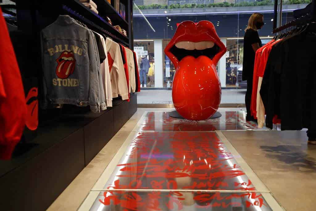 El negocio tiene dos pequeñas plantas y lleva el rótulo de "RS No. 9 Carnaby'. Es también un recorrido visual al contar con cinco pantallas gigantes donde se pueden ver las actuaciones del grupo en distintas ciudades del mundo durante sus casi 60 años de carrera.