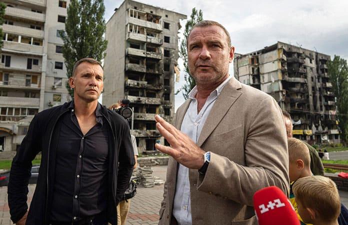 El actor de Hollywood Liev Schreiber y el exastro del fútbol ucraniano Andriy Shevchenko pidieron que se mantengan las donaciones internacionales para Ucrania el lunes durante una visita a una zona residencial fuera de Kiev que sufrió muchos daños por los ataques rusos.