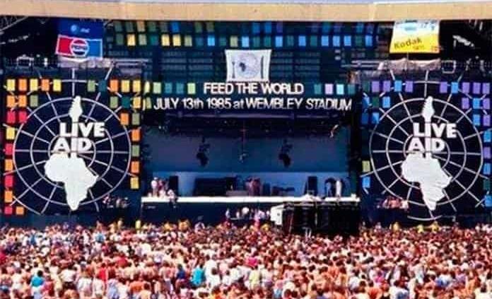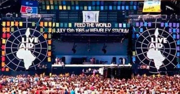 El 13 de julio de 1985, el concierto Live Aid comenzó en el extinto estadio de Wembley, con Cold Stream Guards y Status Quo. Más tarde, se sumaría Band Aid, en el estadio Kennedy de Filadelfia, en EU. Quien tenía los derechos de transmisión fue MTV, que lo transmitió íntegro, mientras el canal 5 de Televisa sólo transmitió una parte. Fue visto por 3 mil millones de personas y se recaudaron cerca de 100 millones de dólares, el dinero fue destinado a Etiopía, país que vivió una gran sequía entre 1983 y 1985.