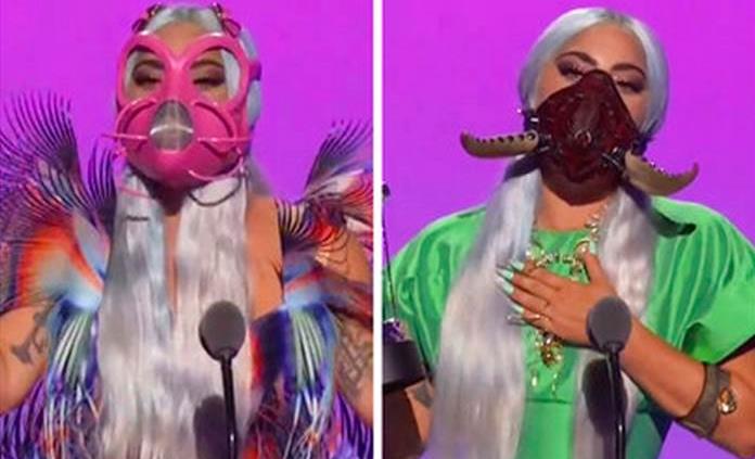 Lady Gaga fue la principal protagonista de la gala de entrega de los MTV Video Music Awards (VMA) de 2020 no sólo por los cinco galardones que se llevó a casa, entre ellos el de artista del año, sino también por las llamativas y originales mascarillas que la neoyorquina lució en cada una de sus múltiples apariciones a lo largo de una noche de distanciamiento social.