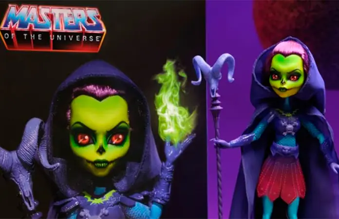 La muñeca inspirada en Skeletor destaca por su diseño con piel verde y armadura metalizada.