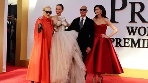 La alfombra roja de la 'premiere', en el Lincoln Center, fue un despliegue de moda digno de la revista ficticia Runway, encabezado por sus cuatro protagonistas, que posaron sonrientes entre dos enormes esculturas de zapatos con un tridente en el tacón, símbolo de la obra.