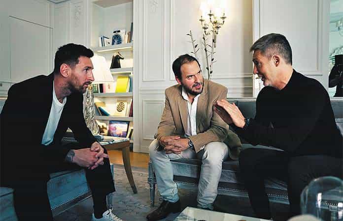 La escena finalmente se aligera con un brindis entre Messi y los representantes en la serie de siete episodios que comenzaron a emitirse el domingo pasado en el servicio de ´streaming´ Star+.