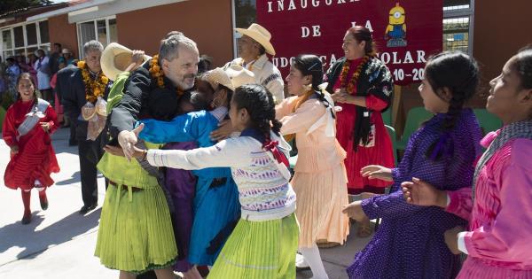 Además, los niños invitaron Miguel Bosé a degustar quesadillas tradicionales, le obsequiaron una pulsera especialmente bordada por mujeres mazahuas con su nombre y le cantaron “Cielito lindo” en su lengua indígena.