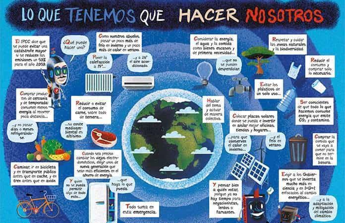 Además, el ensayo gráfico pone sobre la mesa en su último capítulo "lo que se está haciendo y lo que se puede hacer", tanto desde el punto de vista de la ciudadanía como de los gobiernos, para conservar el planeta.