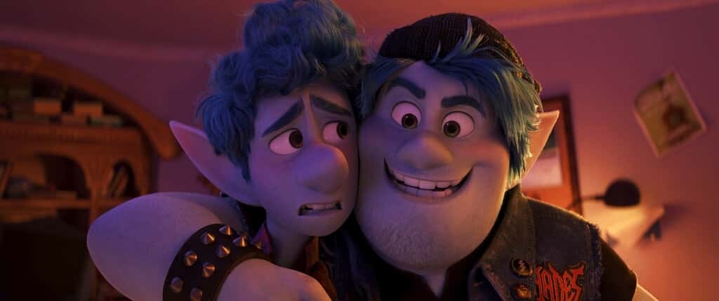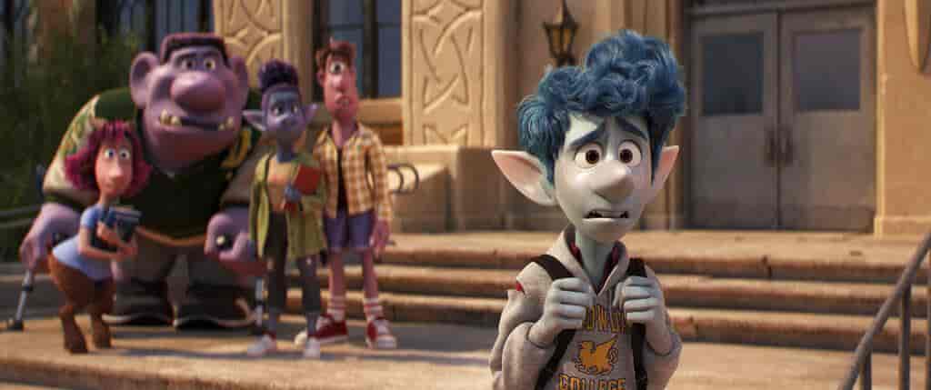 El ambiente es prototípico de Pixar, aun cuando en "Onward" — con sus elfos azules con camisetas de franela y música estilo años 70 y 80 — parece casi una respuesta del estudio al rock progresivo. Esta es una de las películas de Pixar más raras en cuanto a estilo, más similar al juego de rol Dungeons & Dragons y a la exuberancia rockera y nerd de Jack Black que a una típica cinta animada.