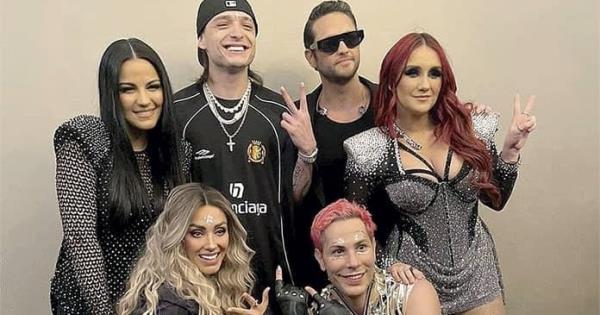 Vía Instagram, Peso Pluma compartió una fotografía junto a los miembros de RBD, en la que se les observa con los atuendos que lucieron durante esa noche. También posó con Manuel Velasco, esposo de Anahí, y Andrés Tovar, consorte de Maite Perroni.