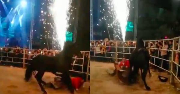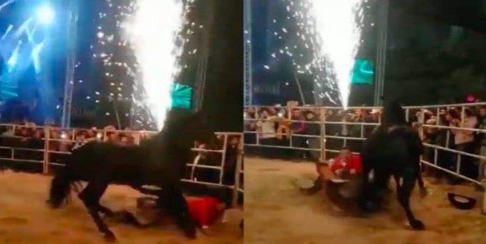 En las imágenes también se aprecia a José Manuel cuidándose de no ser golpeado por el caballo, que también perdió el control, pero al escuchar la voz del cantante se tranquilizó de inmediato.