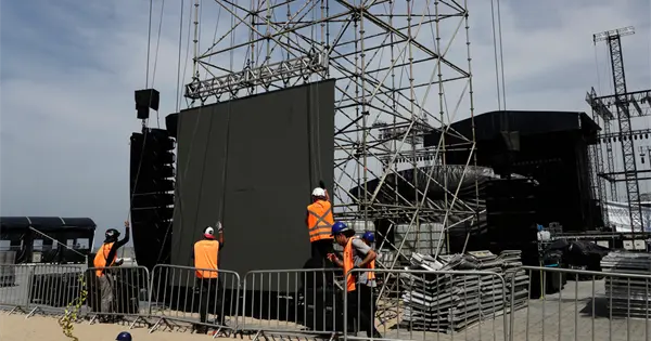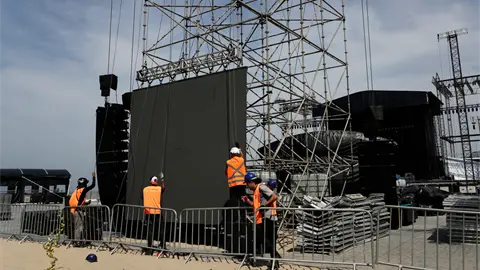 Reanudan montaje del escenario para concierto de Shakira en Brasil tras muerte