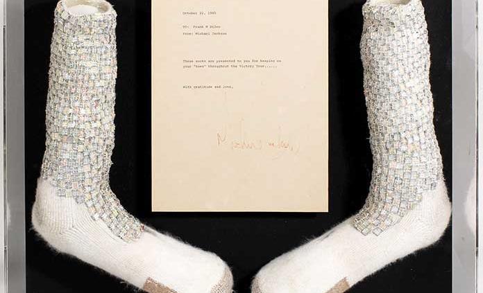 Un par de calcetines del cantante, productor y bailarín estadounidense Michael Jackson se subastarán el próximo 13 de noviembre, junto con una carta que firmó “El Rey del Pop” para Frank DiLeo, quien fuera su representante en la década de los 80 y finales de los 2000.