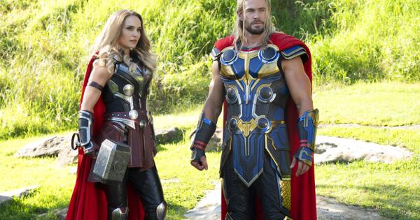 "Thor: Love and Thunder" ("Thor: amor y trueno") — una rara cuarta película para un personaje de Marvel — tiene cabras gigantes y gritonas, un Zeus horrible, niños en jaulas, delfines espaciales, osos de felpa con ojos de rayos láser, una parodia de un comercial de Old Spice, Natalie Portman dándole un cabezazo a un villano, extraterrestres azules y mucho Guns N' Roses.