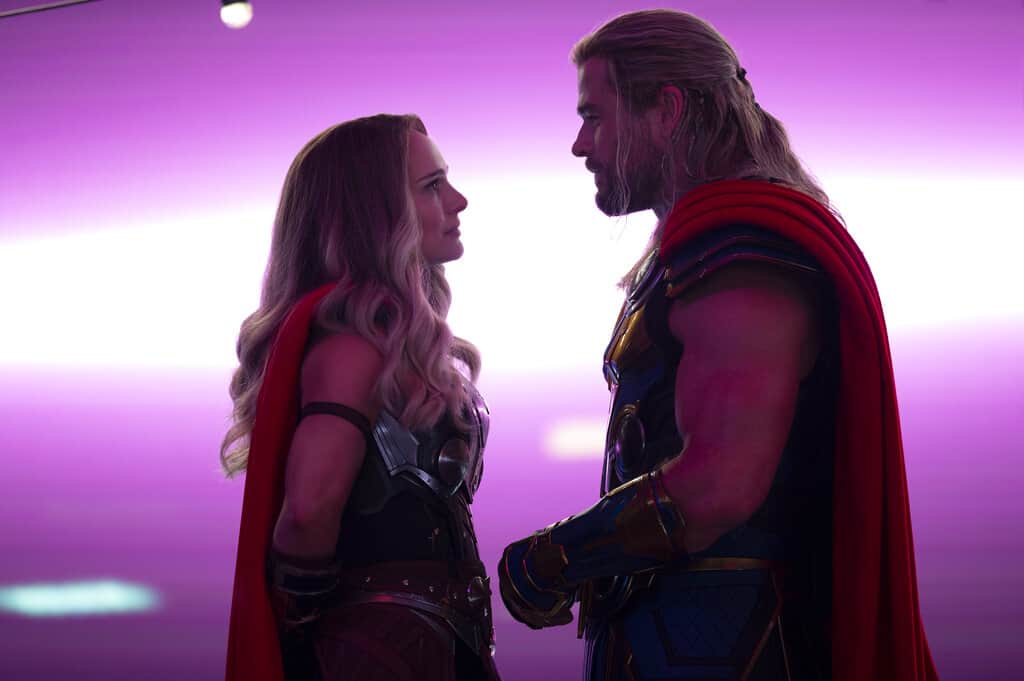 Un personaje problemático que está de vuelta es Jane Foster, la ex de Thor que él sigue extrañando ocho años después de que terminaron y que no apareció en la tercera película. Pero ahora Foster, interpretada por Portman, tiene su viejo martillo mágico, Mjolnir, y se ha convertido en una superheroína: la Poderosa Thor. Está tratando de crear su propio eslogan, como "¡Come este martillo!".