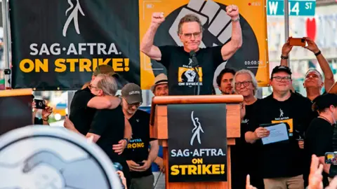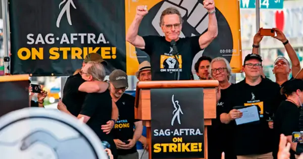 SAG-AFTRA fue una de las organizaciones que protestó en 2023 para exigir un aumento salarial y regulaciones sobre la IA, entre otros derechos para mejorar las condiciones de actores, logrando un acuerdo tentativo con la Alianza de Productores de Cine y Televisión (AMPTP).