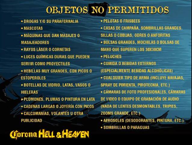 La comunidad metalera de tres a ocho años de edad entrará gratis acompañada de un adulto con boleto. En el área de acceso se verificará la edad de los niños para que puedan entrar al evento —solamente un niño por padre, con estatura menor a 1:30 metros—.