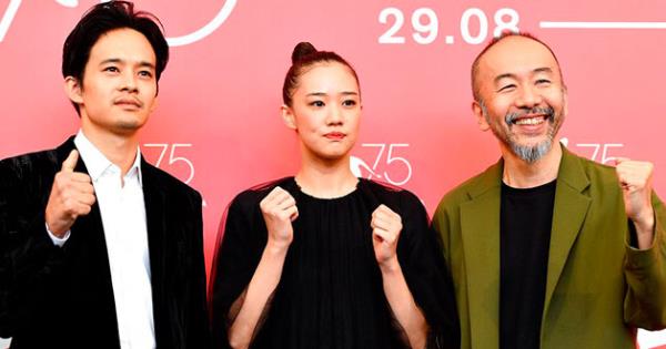Los actores Sosuke Ikematsu y Yu Aoi y el director Shinya Tsukamoto durante la presentación de "Killing"/ Foto: AP