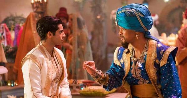 El Genio de Smith es un fanfarrón necesitado que bebe martinis y hace poses de yoga, lleva el cabello recogido en un moño y hace un montón de referencias a la cultura popular bajo la manga ("¡El público se enloquece!", dice). Cuando está azul, es puramente un efecto visual y se esfuerza demasiado en parecerse al difunto Robin Williams. Cuando tiene su tono de piel normal, es Smith, y mejor. Una escena en la que el Genio intenta ayudar a un mudo Aladdin a cortejar a Jazmine es de las más chistosas que el actor haya hecho en años.