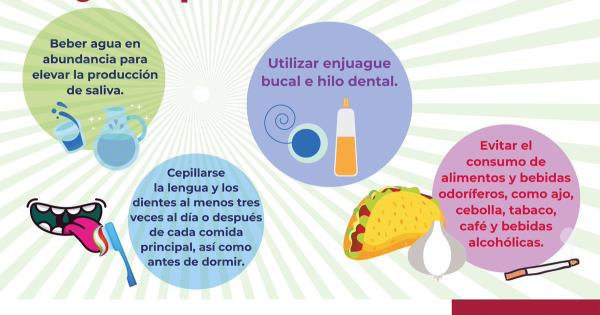 Sugiere evitar el consumo de alimentos y bebidas odoríferos como ajo, cebolla, tabaco, café y bebidas alcohólicas, para prevenir este conjunto de olores desagradables.